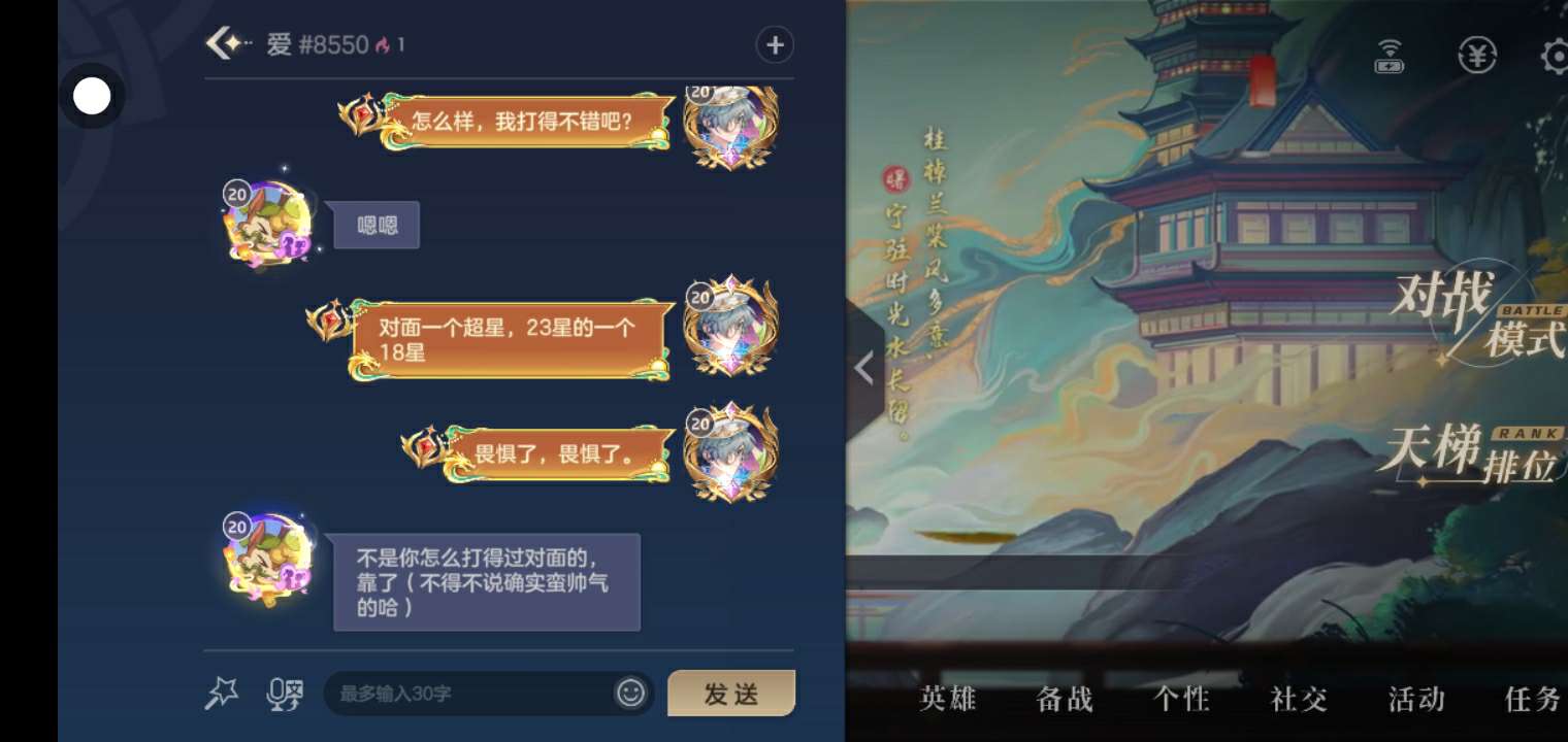 匹配带飞打过对面超星主宰18星和23星的情侣被我家辅助夸了