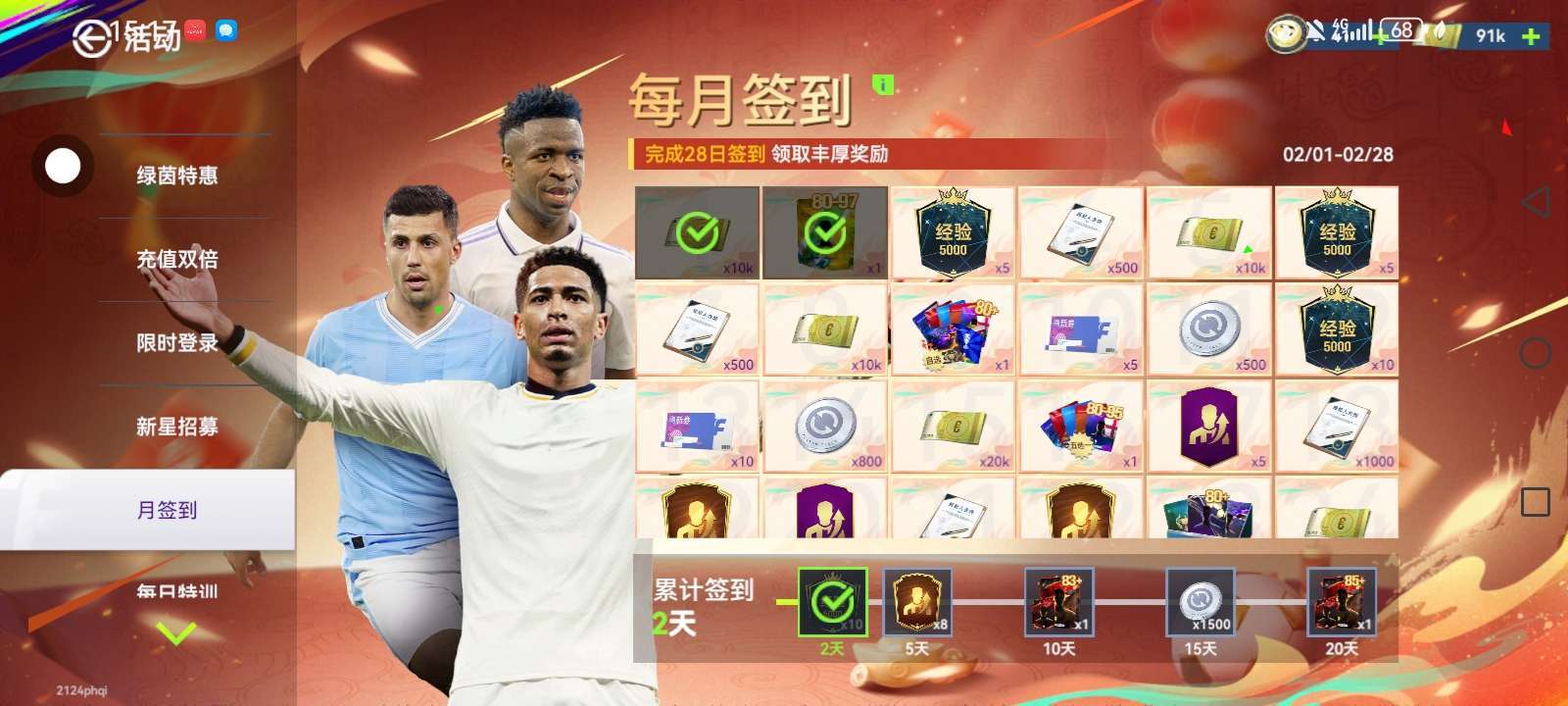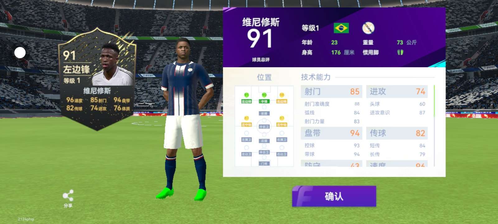 牛逼了,80~97评分桑巴卡包抽中91评分皇马左边锋维尼修斯!😆