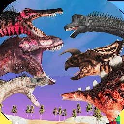 霸王龙把恐龙咬爆浆全是血。😏棘龙头太绿了。蓝色的牛。土鳖角鼻龙。