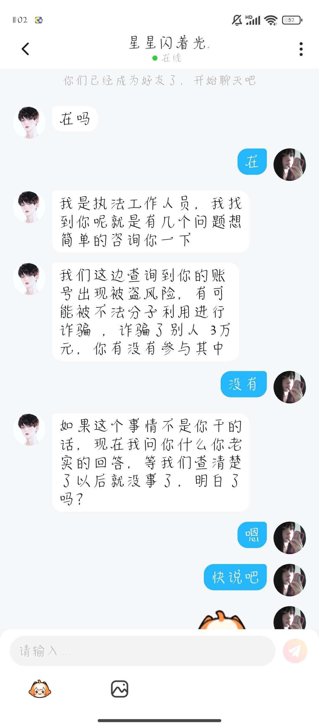 小妹妹们不要信他哦,盲猜他就是那个诈骗团体的一员,注意别泄露任何信息他的233号:436109866