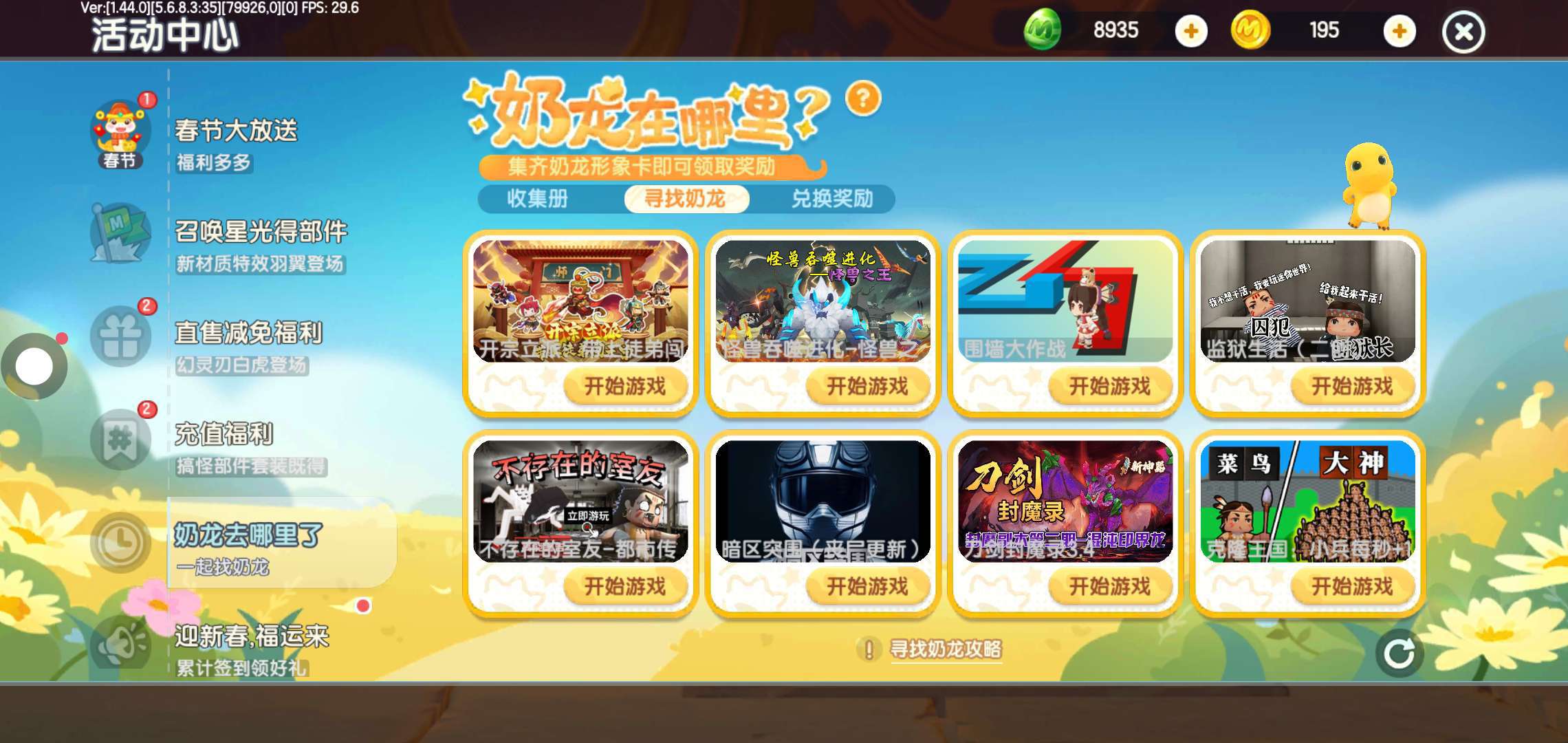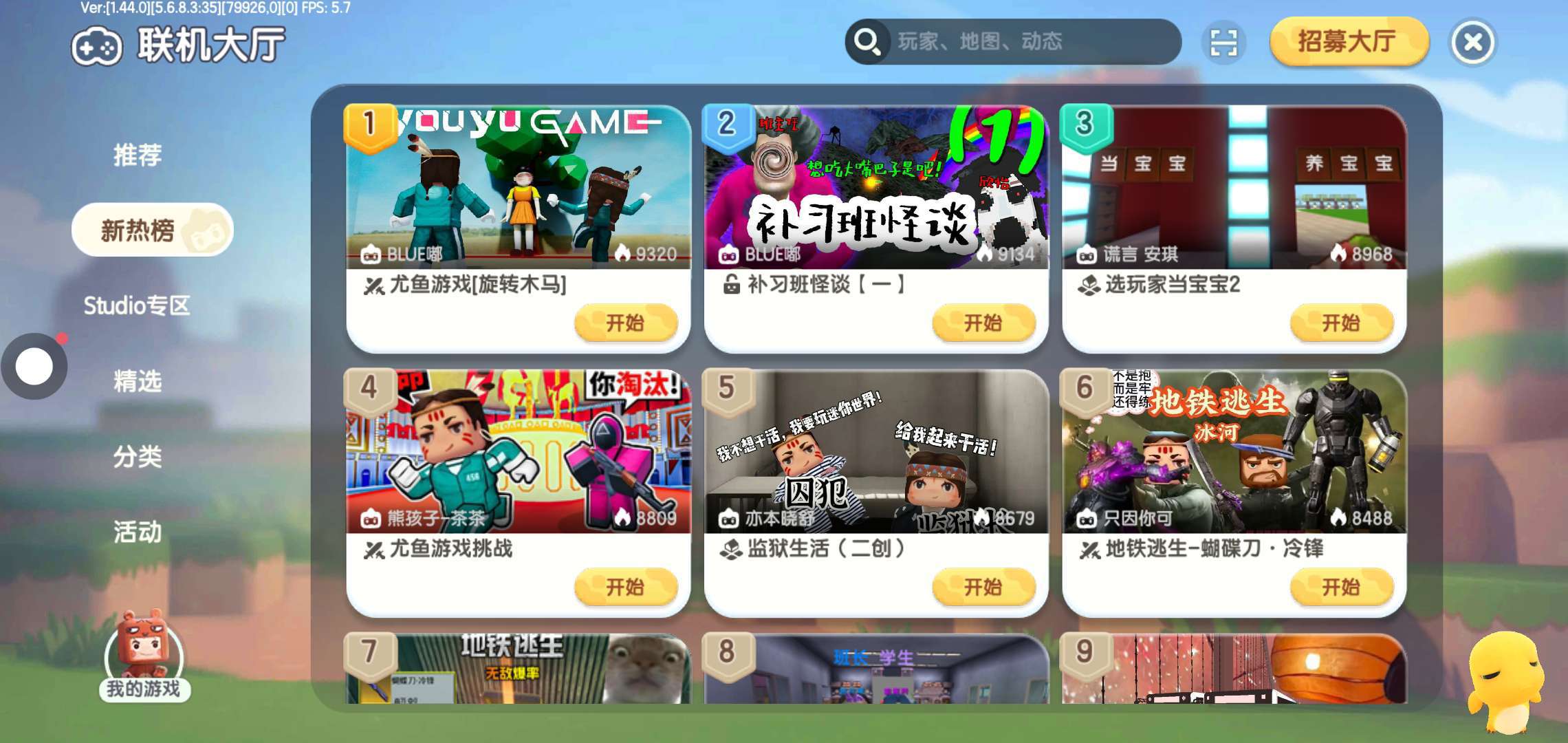 4.联机大厅的新热榜/右上角的招募大厅 右下角都有只大眼奶龙