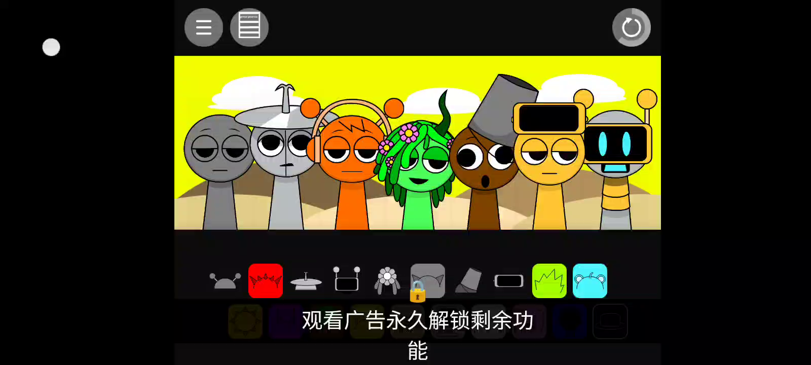 国外玩家自制模组(内含恐怖元素) 如何进入第二阶段:拖动并放置右下角黑色帽子即可进入 节奏盒子Sprunki感染实验版是一款独具特色的音乐类游戏,让你能够自由挑战音乐关卡,还可以自行创造关卡供其他玩家进行尝试挑战。涂鸦风格的画面和各种节奏感超强的音乐一定会让你喜欢。