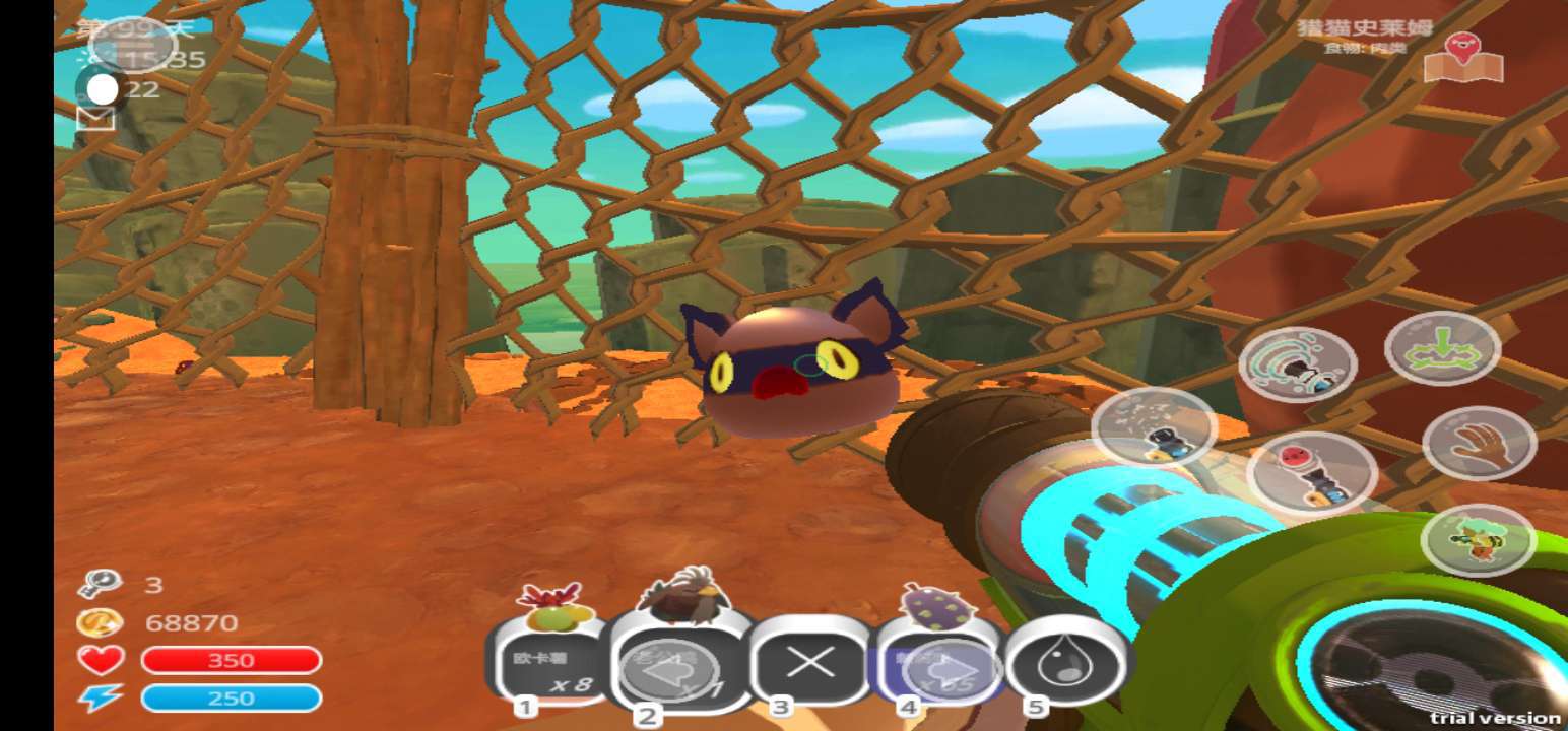 感觉猎猫史莱姆受惊吓的时候我看着都有点细思鼻孔,还有猫猫史莱姆其实是可以叼东西的,还会发出一声喵叫,还有第一幅图的那个网是可以把任何物品挂在上面(疑似bug)但是过一会儿它自己就会掉下来,还有巨型史莱姆最多可以喂50个,如果是爱吃的食物,那就可以喂25个,还有,给焦油怪泼一次水他就会停止繁殖,最多也就只能吃掉史莱姆,还有史莱姆舞台是有一个bug的(之前说过),所以也可以用史莱姆舞台的bug来抓住招财猫史莱姆(看你运气好不好)水可以把辐射史莱姆的圈给弄没(如果辐射史莱姆是跟另外一个史莱姆杂交并且你用真空枪把他给吸上来的时候也会有强制1点辐射,也疑似一个bug)水也可以把火焰使莱姆头上的火给灭掉,量子史莱姆被水泼后将不会释放分身(有时间限制)火焰史莱姆放到水里并不会立刻死掉,而是头上的火被灭掉,但是过一会儿他就会死(不管是在陆地上还是在水里面,都会过一段时间就会死)水还可以让生气的史莱姆冷静一下,水也可以加速农作物的生长速度。