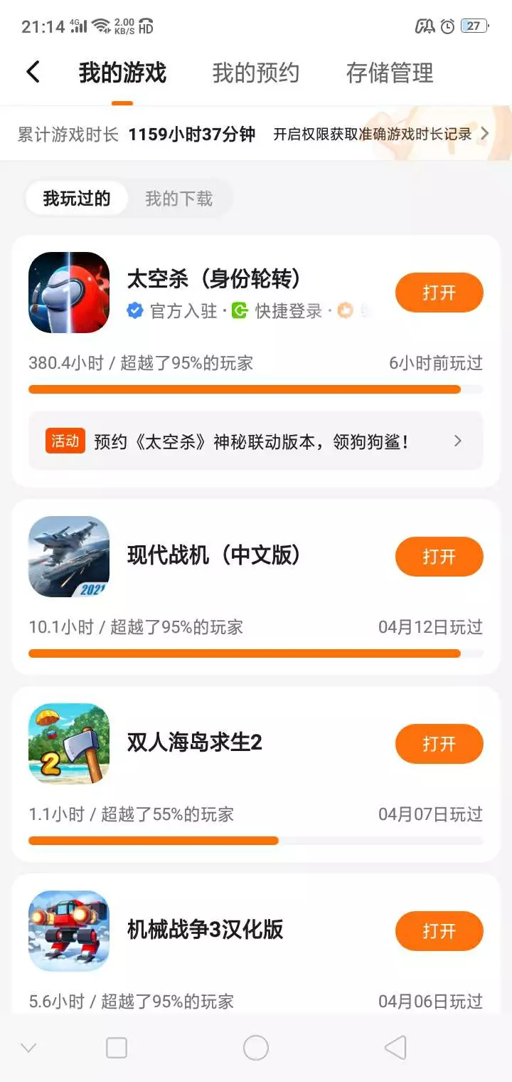 玩了最久的游戏太空杀。