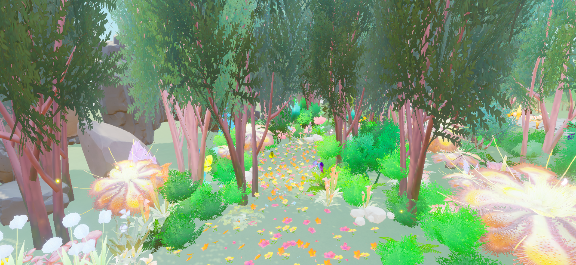 不过这地图也有个小缺点,就是互动性不足。虽然光看风景就已经很美了,但要是能和小鹿互动玩耍,或者亲手抓一抓蝴蝶,肯定会更有意思。要是再藏一些小惊喜,比如藏着神秘道具的小屋子,那就更棒了,能充分激发大家探索地图的热情,让大家更愿意在这片奇妙的世界里四处探寻