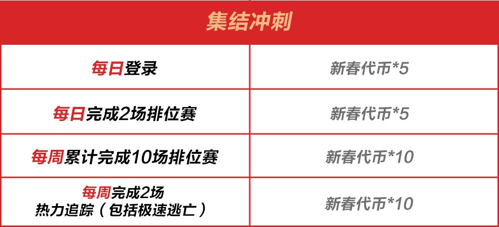 活动期间,完成日常或是累计任务即可获得蛇年新春代币,积累这些代币能在新春集结活动中累计获取10000钻石!
