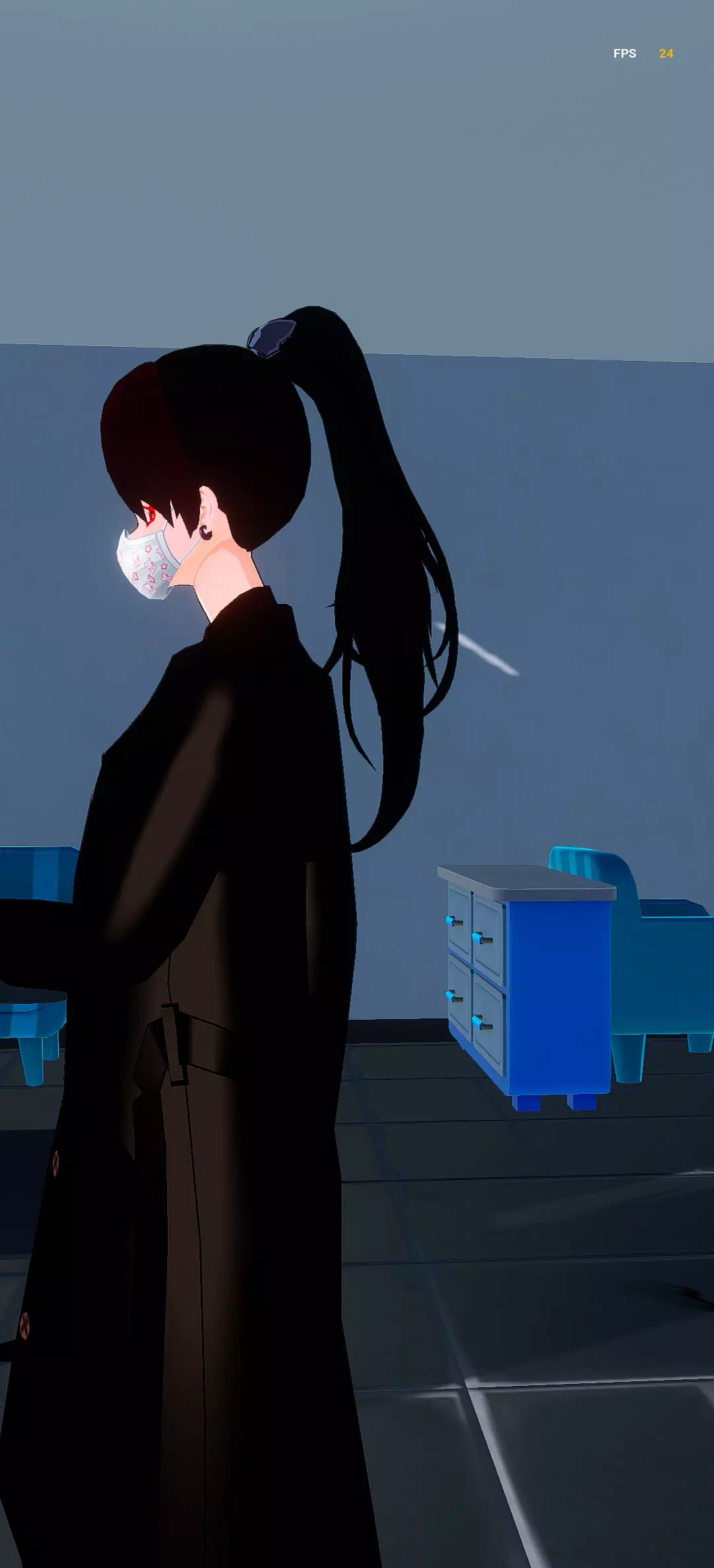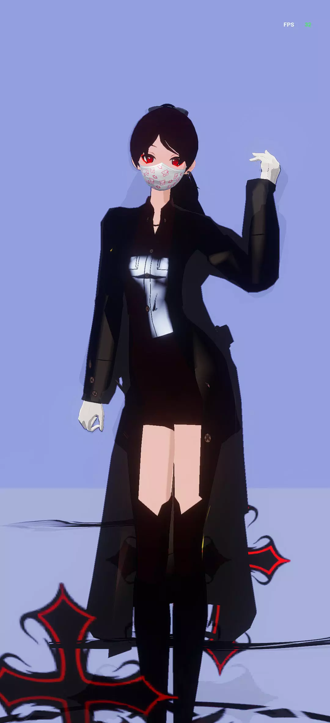 细节黑色衣服和左臂红色袖标