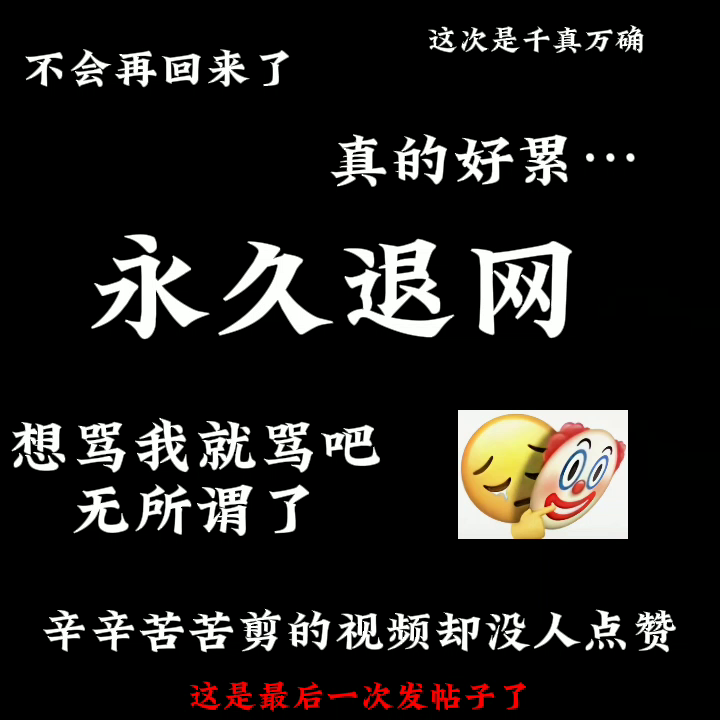#永久退网#希望我的粉丝天天开心#这次真的没有开玩笑,原因是我累了,辛辛苦苦剪的视频却没有一个赞……