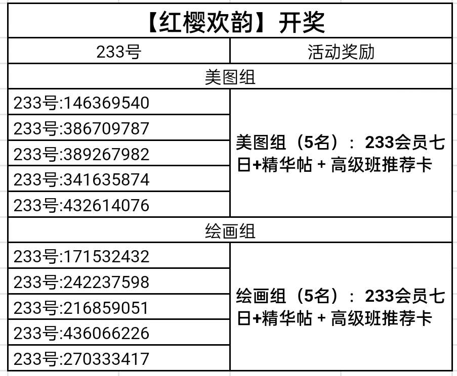 🌟绘画组(5名):233会员七日+精华帖+高级班推荐卡