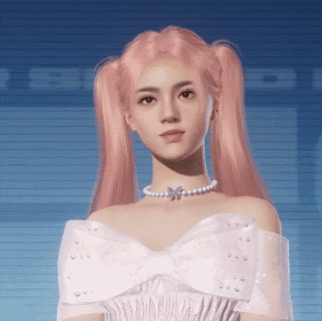 粉色双马尾轻盈垂落