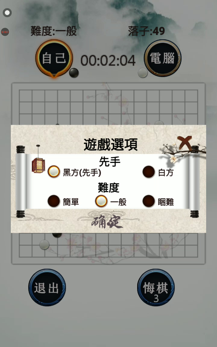 1.水墨风格的五子棋游戏,智能AI,欢迎挑战,在娱乐中提升自己的棋类水平。 2.3重不同难度的AI,方便不同级别的玩家选择对战,提升自己水平