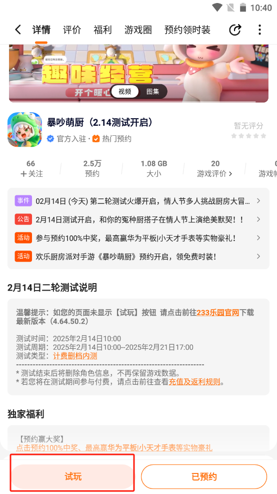 如您的游戏页面未显示【试玩】按钮 请点击前往233乐园官网下载最新版本(4.64.50.2)如下所示