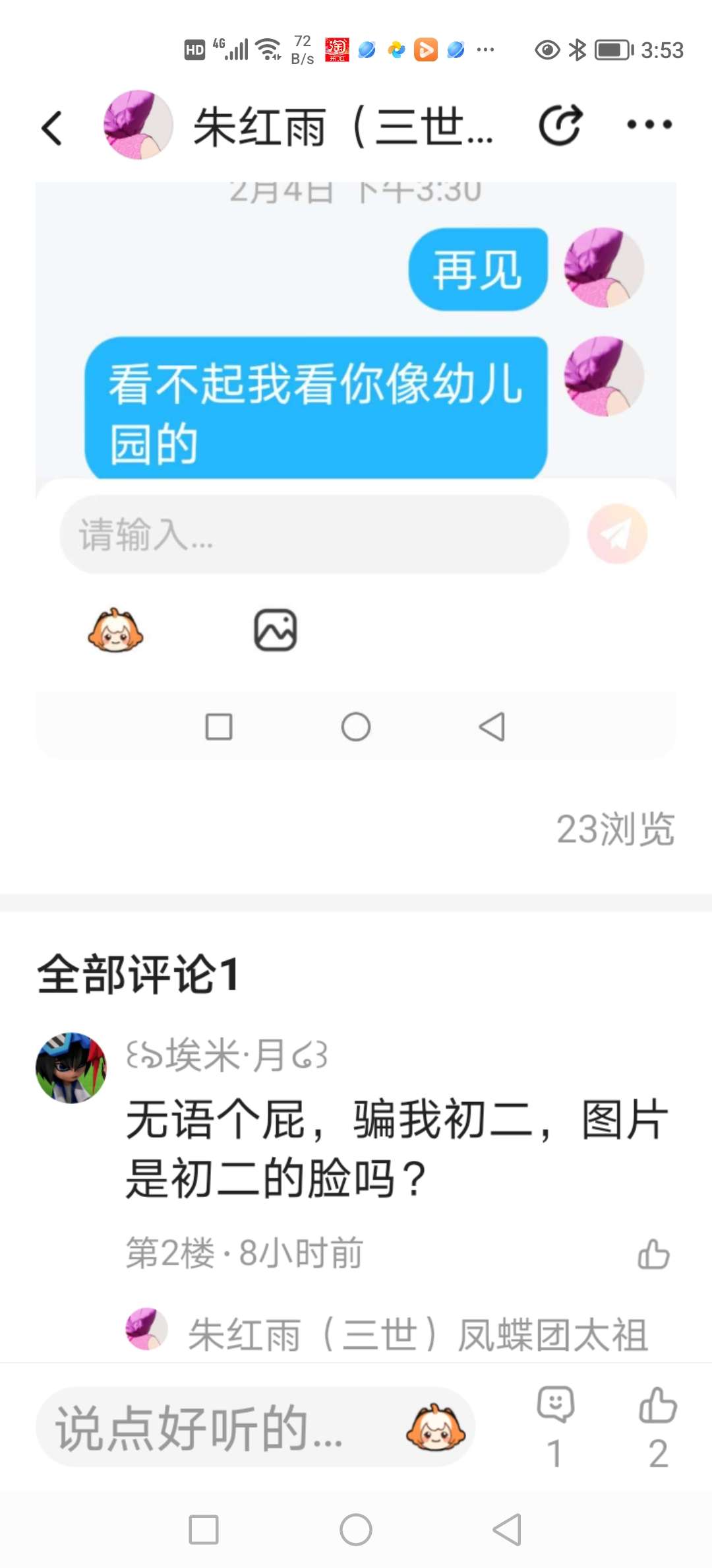 其一、这人恶意骂人。其二、我所说句句实证。其三、他有什么证据证明我是骗人的。其四、我和他不熟。其五、他有什么资格说我。其六、我有证据证明我没说谎。其七、他是怎么确定那么照片是我上网来的。其八、那个抖音蔚蔚安是我母亲发的。其九、我有证据物证实证。。。。