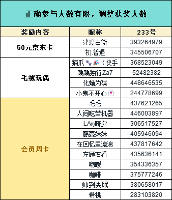 随机抽取20名玩家送出233乐园会员周卡