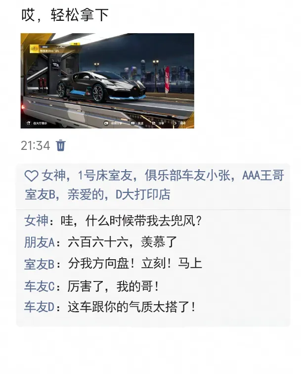就连一年前看轻你没有拿下拉法而失联的前任车搭子,都会默默把你的备注修改成:双珍藏车主&人脉资源库#尊贵版,并朝沉寂已久的对话框发出: