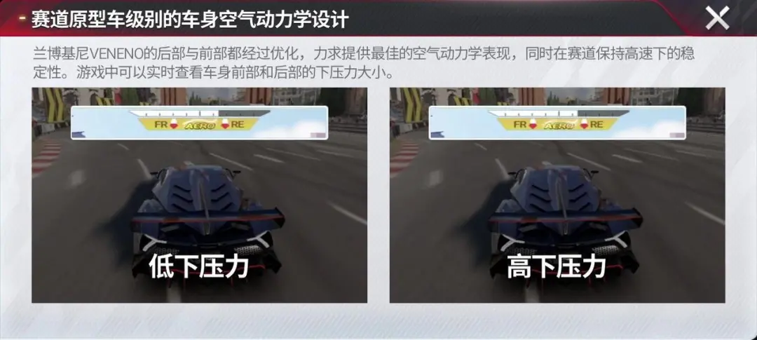 而驾驶 Veneno,你将通过实时显示的前后轴下压力,精确掌控车辆的动态。每一次刹车加速,都能与车体完美同步,实现人车合一的境地!