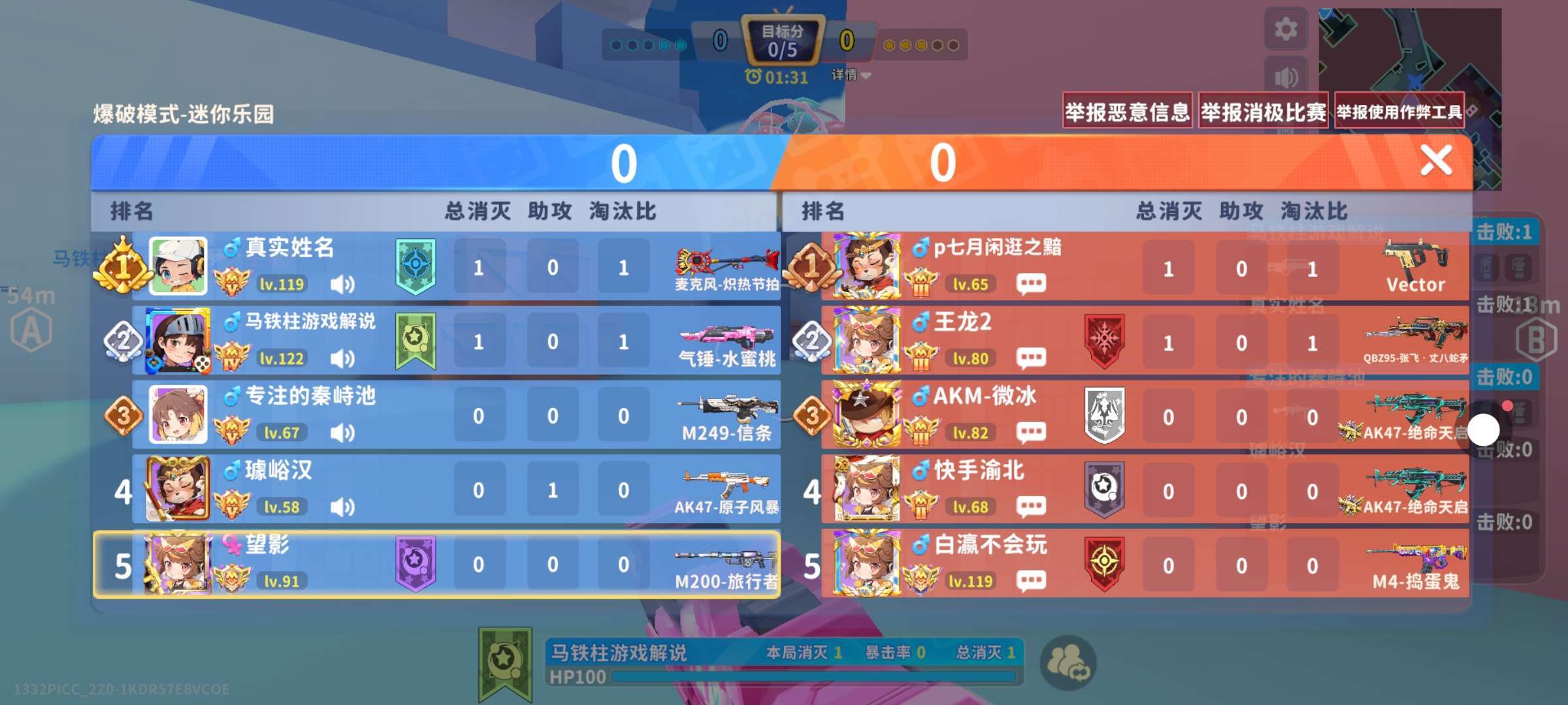 练狙的第1天。最后一场单挑一颗雷直接带走。