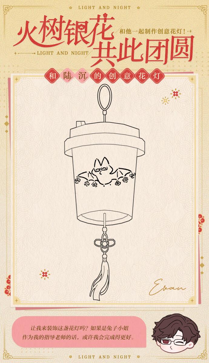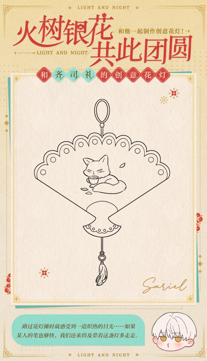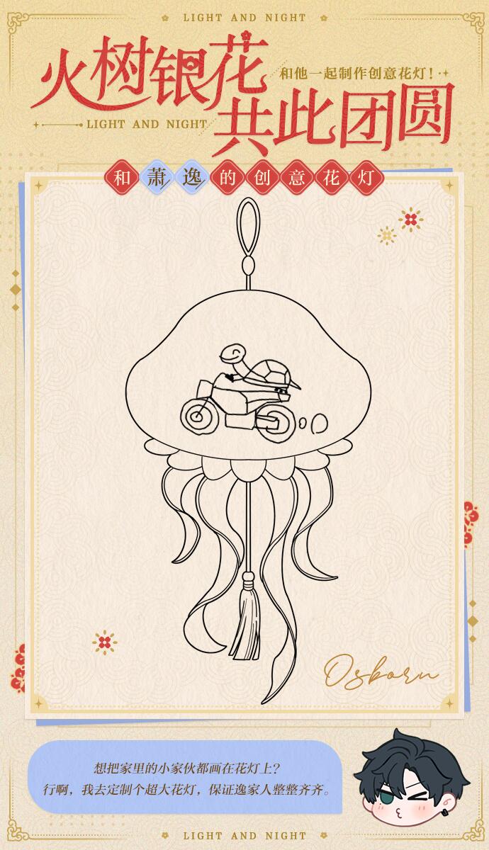 设计师可以按自己的想法对花灯进行填色,也可以在他所绘制的图案的基础上,施展额外的创意,和他一起完成属于你们独一无二的作品~