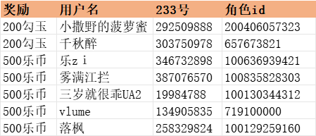 7、勾玉奖励将直接通过邮件发放至中奖id的游戏内邮箱,乐币奖励将直接发放至中奖233账号