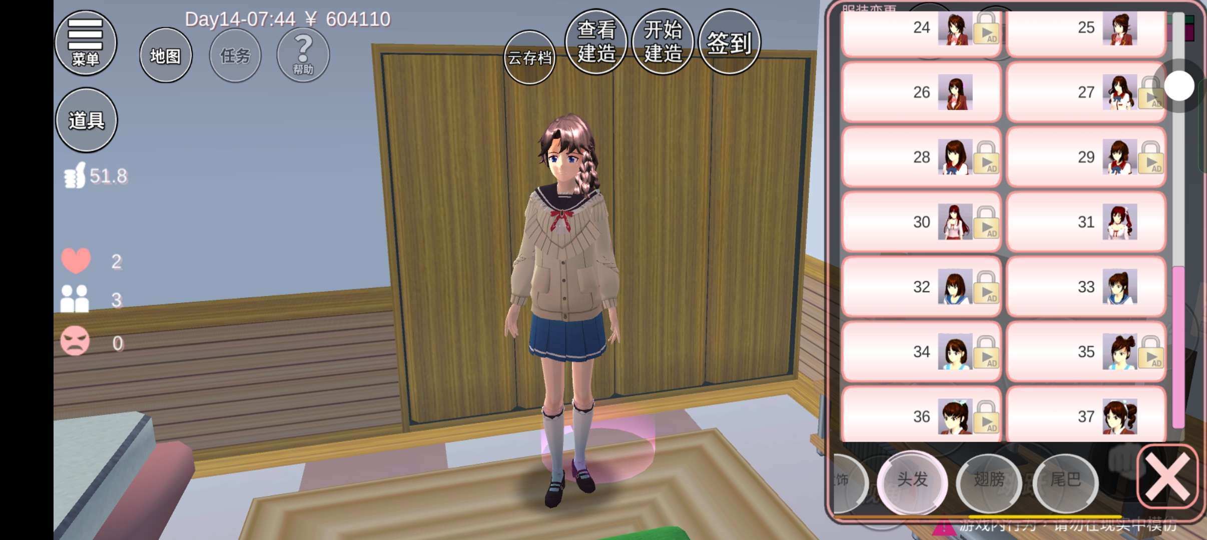 无法在游戏里更换头发