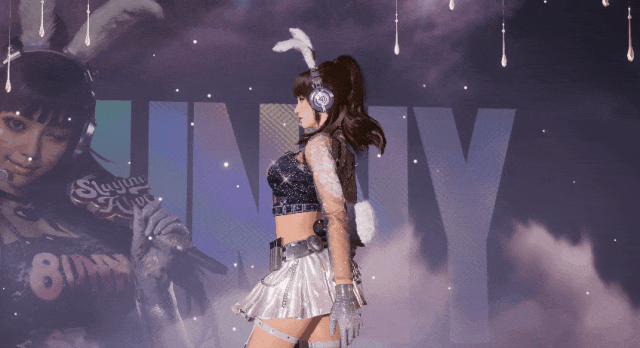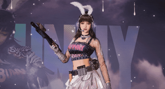 粉黑配色甜辣十足闪粉细细点缀着兔耳与服饰,在每一处光线下闪耀动人,配合比耶元气动作将甜美氛围贯彻到底