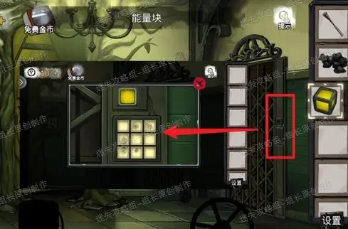18、 走廊最右侧门点击放大后,能量块对红框处的密码输入处使用,之后使用沾着煤灰的刷子,得到答案,按下全部指纹存在的按钮即可打开门,进入剧情。