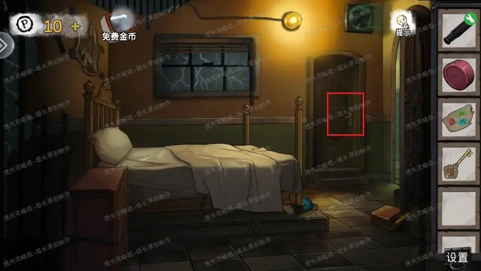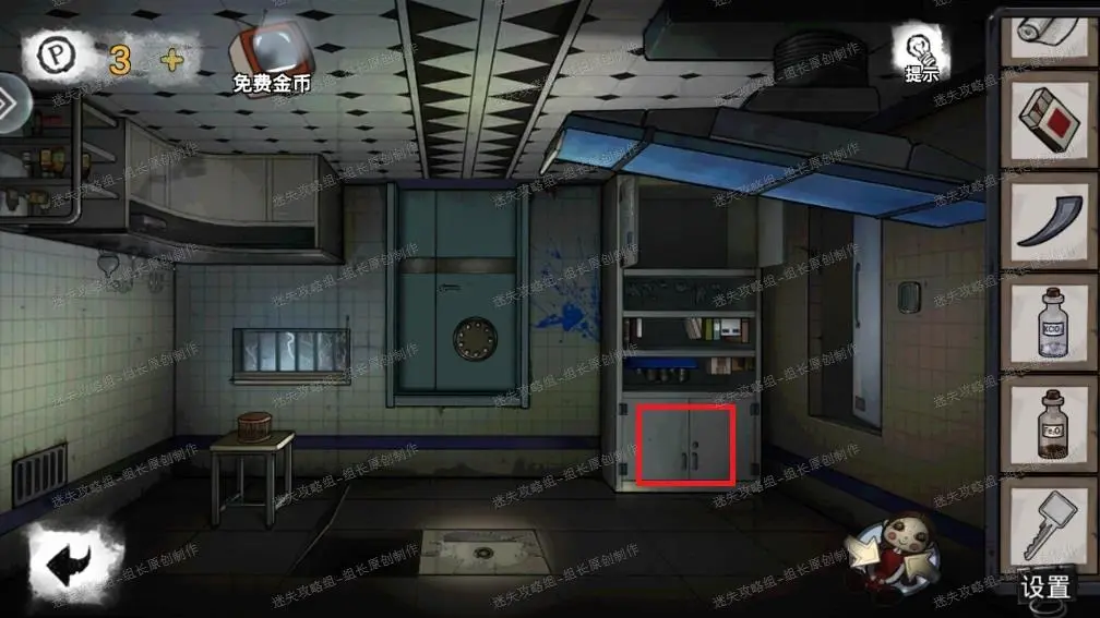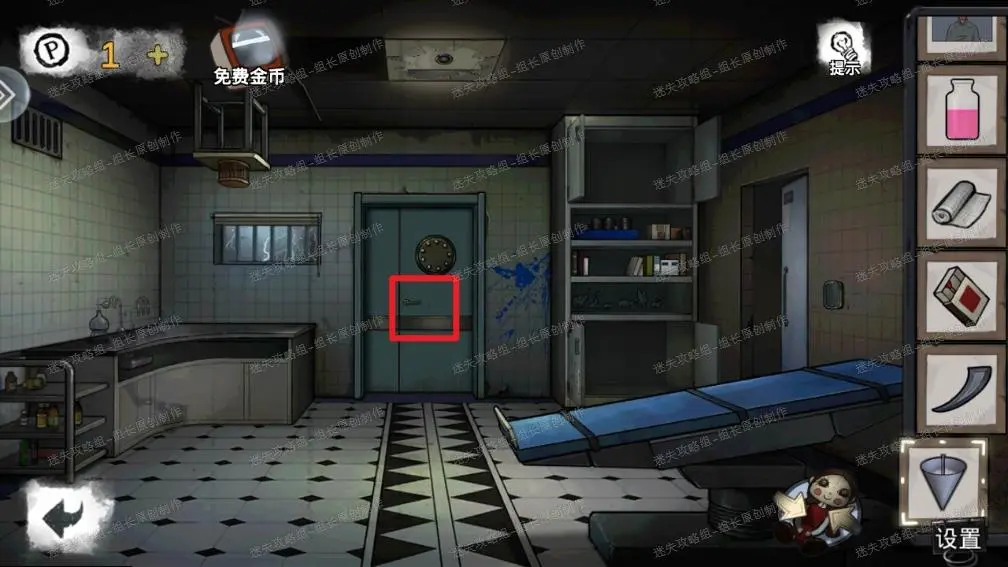 4、 病房红框处的门使用攻略第三步得到的钥匙解锁,解锁后进入卫生间。