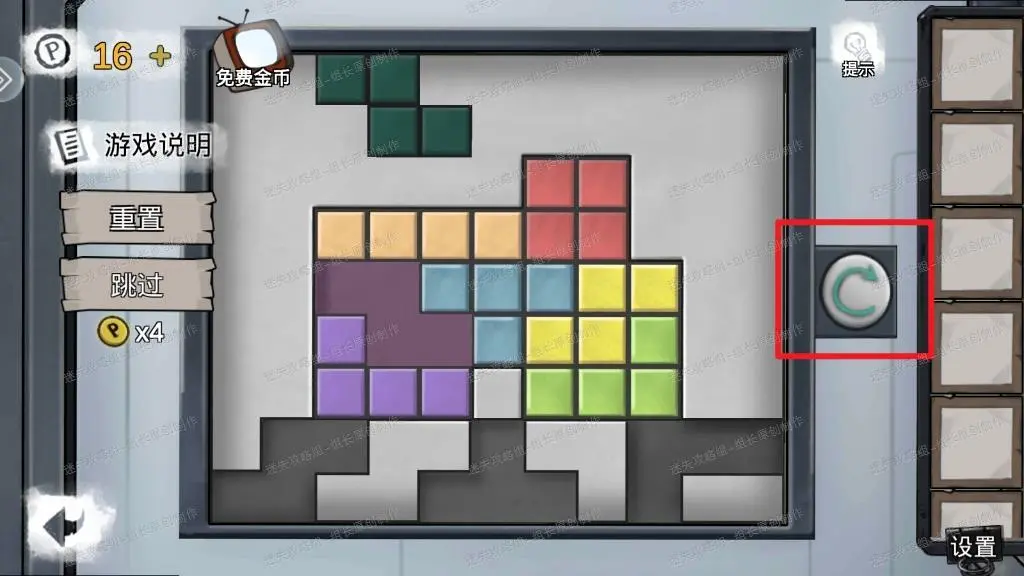 3、 三个方块拿到中间的传送门游戏进行小游戏,小游戏解法如下图,注意的是选择一个方块后右边红框这里可以点击后旋转,之后可以上传送门前往下一个场所。