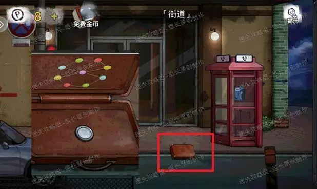 27、 街道,红框箱子输入密码:7618(来自攻略第26步,网吧里滚动信息下边框放大),得到【小圆灯】同时看到提示。