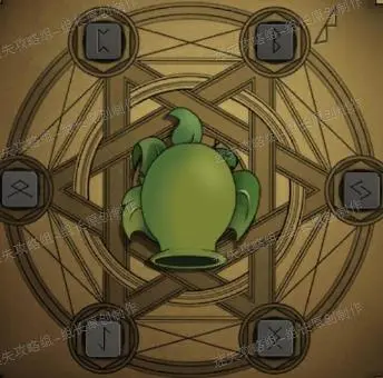 20、 书房,僵尸面前的魔法阵点击放大后放入三个石块,并点击各个石块完成组合得到【豌豆射手】,提示来自于客厅电视机(要注意的是B符号的规定位置已经被规定为右上角,之后依照顺序完成即可)。