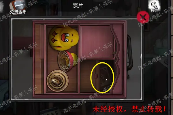 73、 照片:位于小屋的桌子上面,将盒子里面的空格进行移动,之后将右下角的暗格进行打开得到照片。