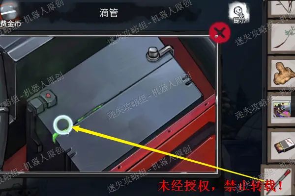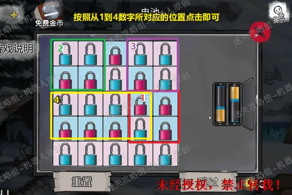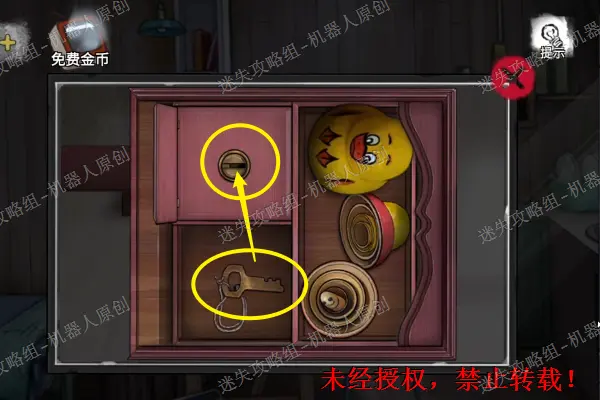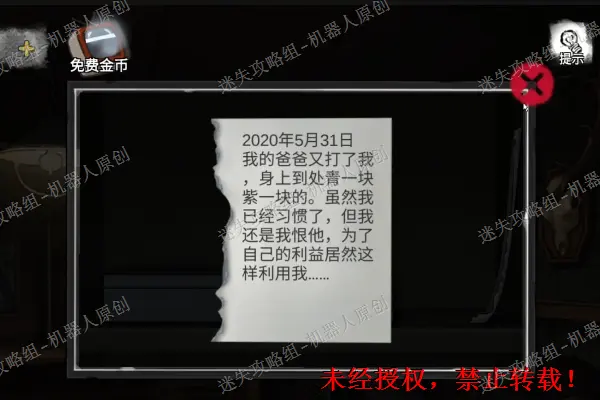 6、 点击一楼的铁柜,将碎片放进去开始进行小游戏(小游戏是随机的因此不做推荐),成功之后得到导板。然后调查右边的日记纸条。6.1