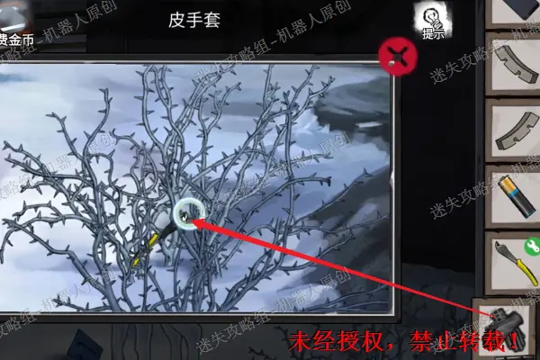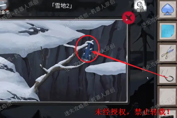 23、 拿到树上的“半把剪刀”最佳哦鸡皮查看位于远处的滑雪板将“石像”获取。23.1