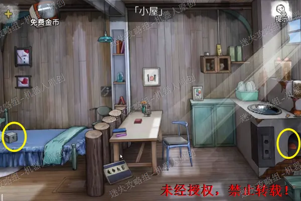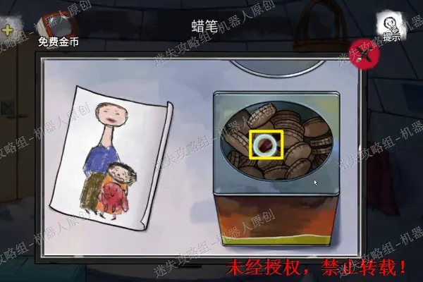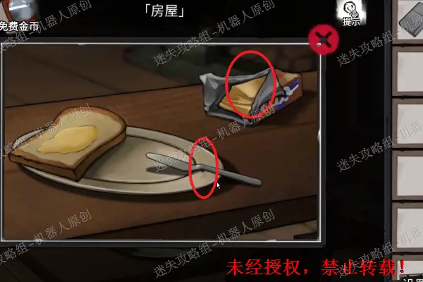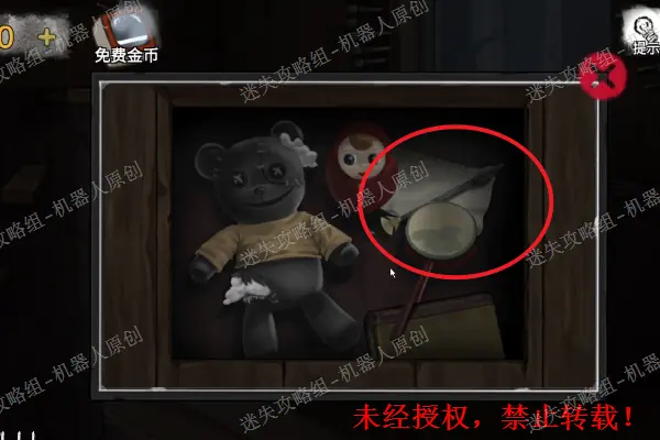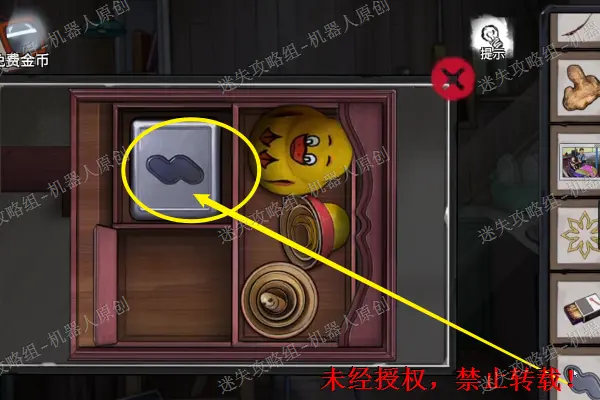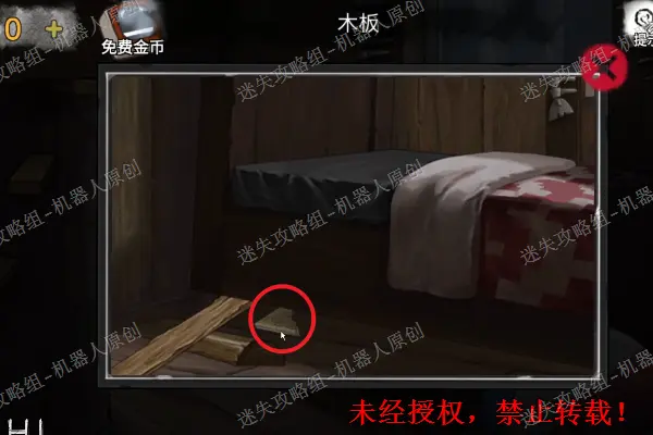 5、 查看二楼的床铺,将枕头下面的套索获取,之后使用之前得到的黄油到打开盒子,得到蓝色的方形碎片。之后继续查看压在下面的照片。5.1