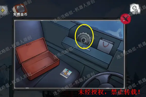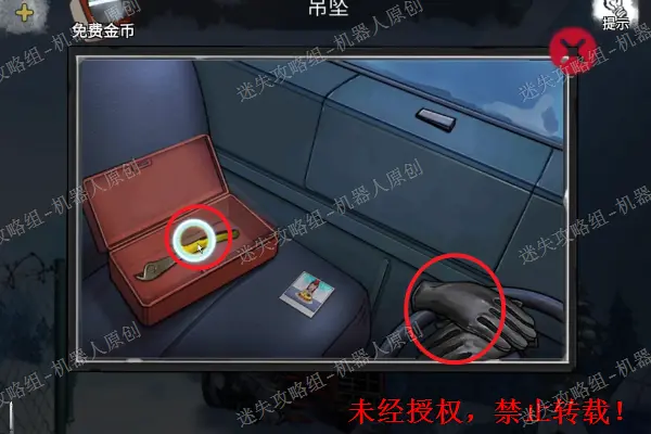 39、 使用钥匙将雪地车的门打开,之后进入驾驶室。拿走方向盘上面的“皮手套”使用“吊坠”将盒子打开,之后得到“半把钳子”。39.1