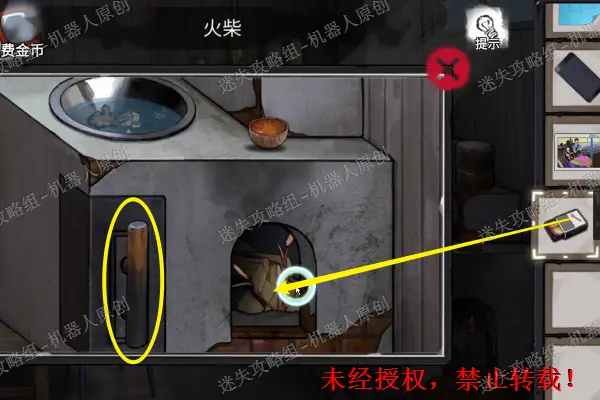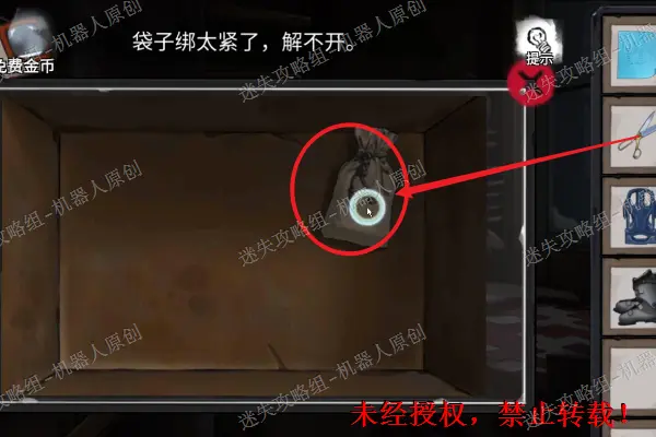24、 查看右下角的石像底部,将石像放上去之后得到滑块。在拿走底座旁边的碎石块。之后查看帐篷使用针来进行撬锁,将帐篷打开。24.1
