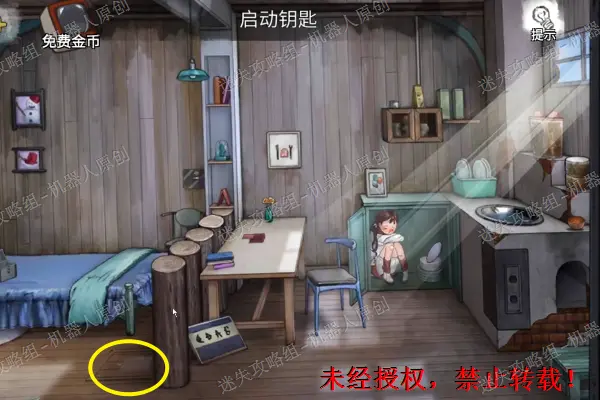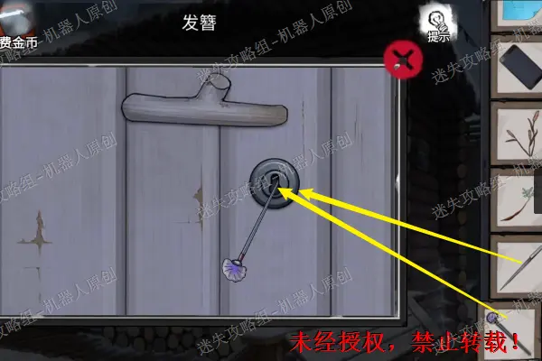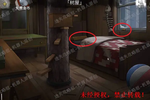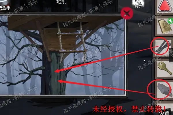 14、 查看树屋,进入特写镜头。使用刚才得到的地钉以及石块。之后进入屋子里面。14.1