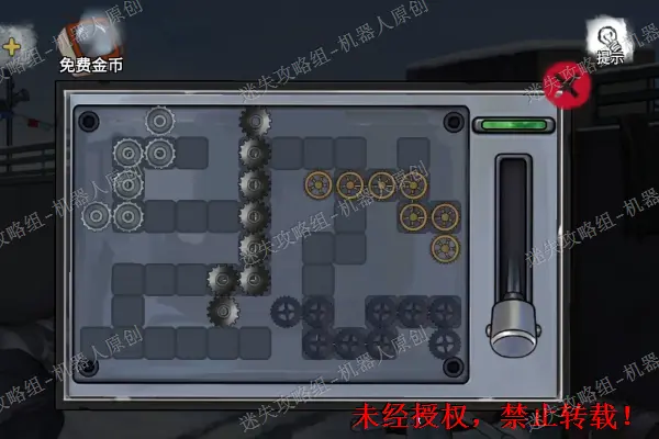 52、 再次回到围墙外面,使用之前得到的“六角扳手”将门禁装置的盖板给打开。之后将两个“齿轮”以及“操纵杆”放进去。在完成全部的谜题之后,将操纵杆干拉下,门禁九江会解除,进入营地。52.1
