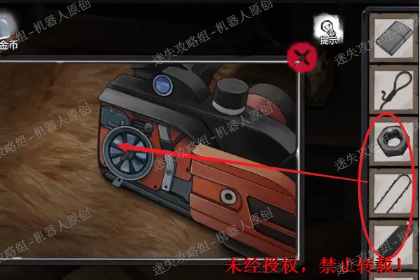 49、 返回树林里面,查看左边的棚子里面的盒子,将电池盖子打开,之后将两块“电池”放进去,完成谜题之后,得到“镶嵌物”49.149.2