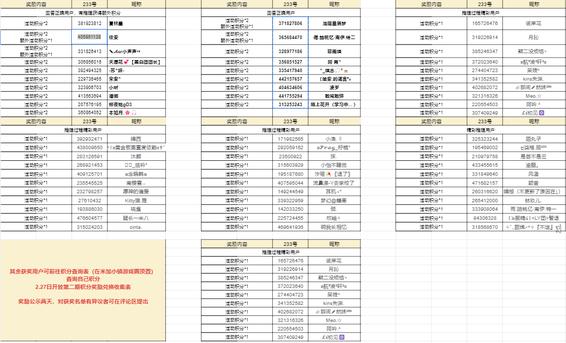 推断依据精彩的用户获得:额外米加活动积分*1(答案错误,推理精彩同样可获得)