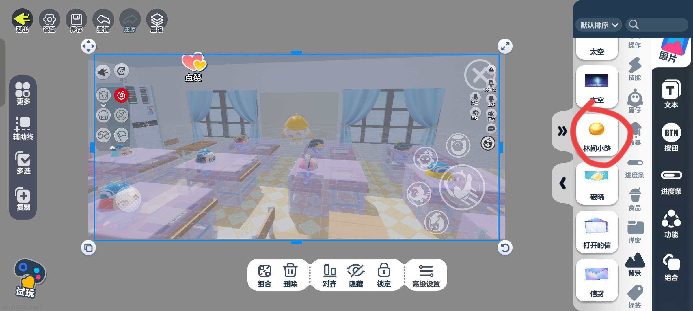 我想问一下就是乐园工坊里的编辑界面,这个背景林间小路是咋回事?背景为啥是空白的?