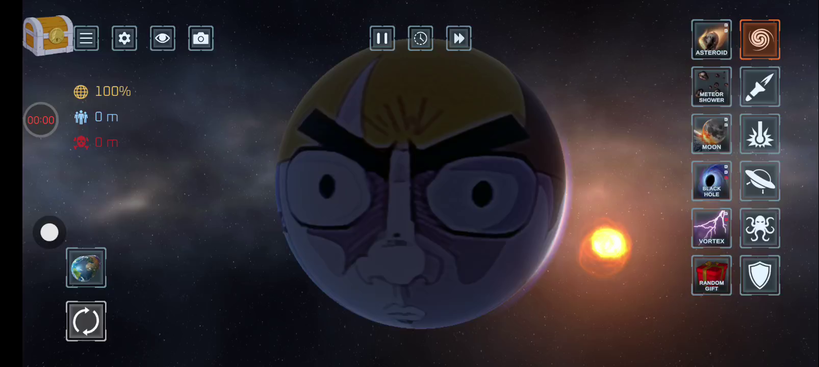【更新日志】 - 新增2种新武器 - 天神之击、制导导弹 - 新增2个新行星 - 戴森群、拐杖糖 - 年底添加随机礼品盒 - 添加武器名称 - 修复错误 一个星球破坏模拟器,它允许玩家使用各种不同的武器来破坏星球。其中包括核导弹,激光和小行星,甚至黑洞等高科技。
