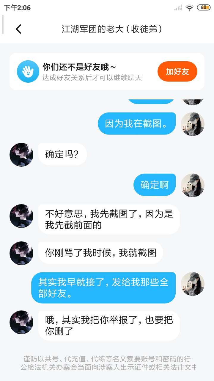 明明是他先骂我的,我只是没邀请他,他就骂我!还截图告诉他师傅!还举报我动不动上就骂人。!