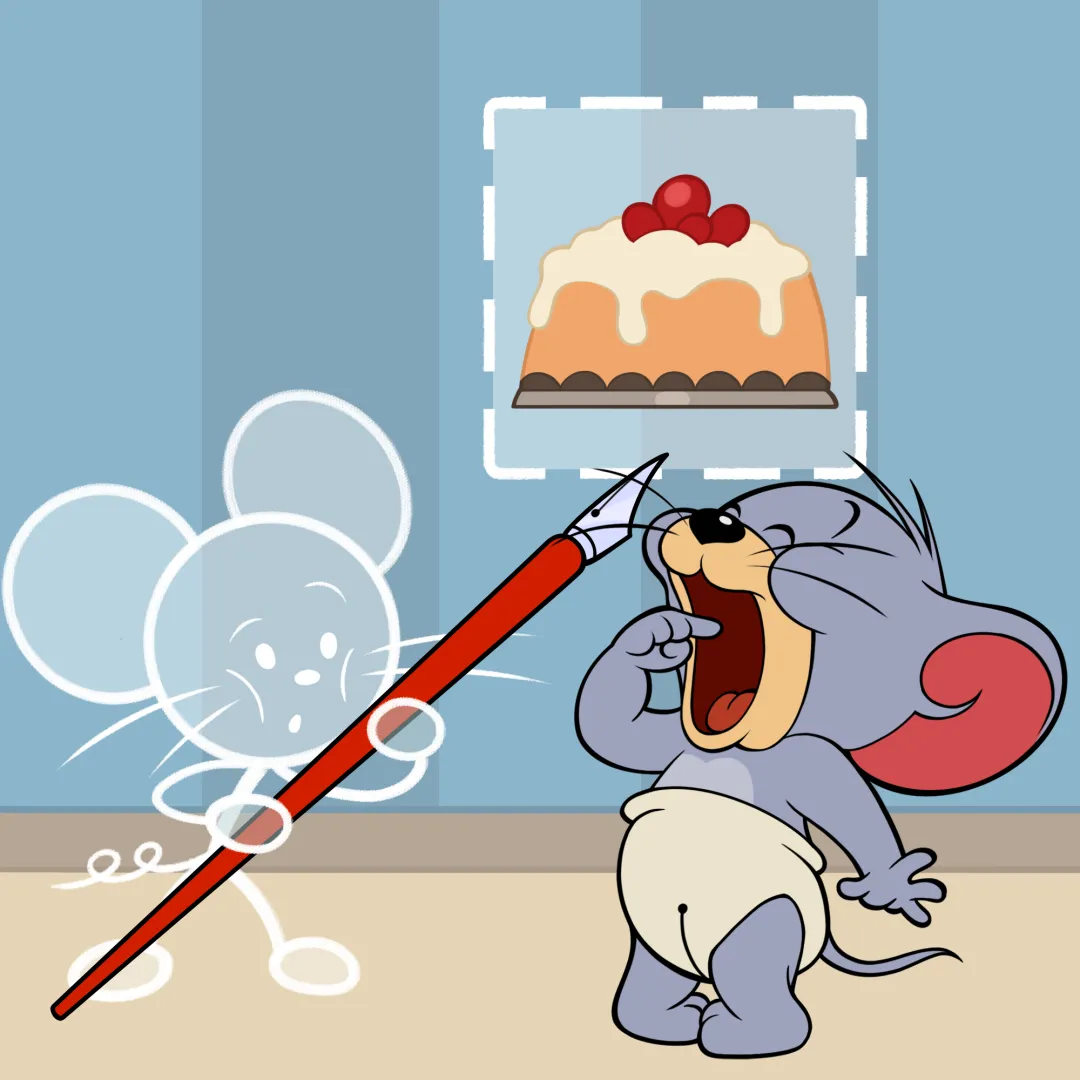 当然,在莱恩迸发灵感的深夜在汤姆的脸上涂鸦被发现后,这对猫鼠的氛围可就没这么和谐了……