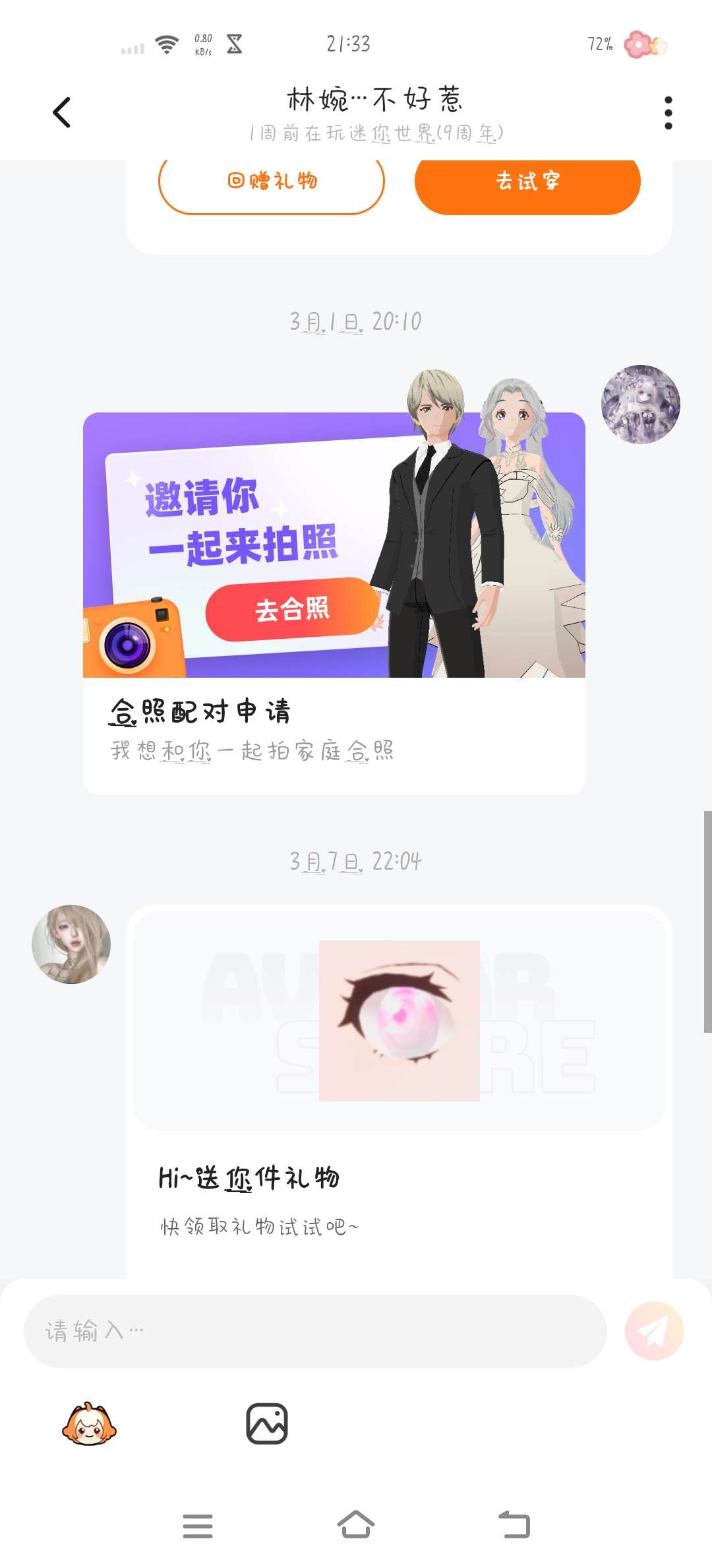 他真的会送礼,不信你去试试,只不过他今天不上线