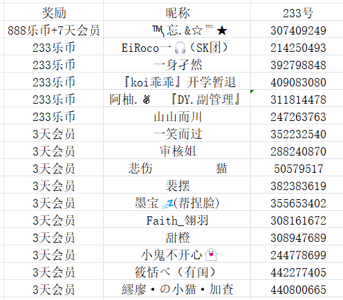 随机抽取5位小伙伴送出233乐币