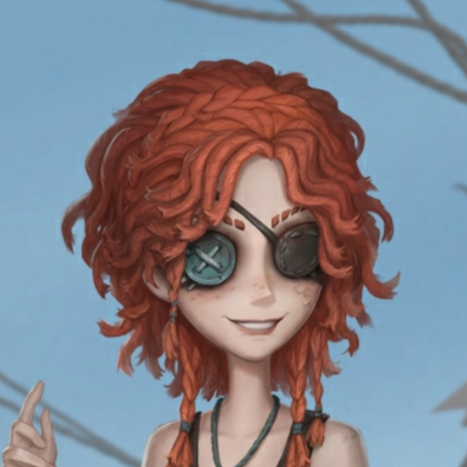 火红的短发如永不熄灭的烈焰,恣意张扬。面颊的雀斑与左眼的伤痕昭示野性,仅存的绿色右眼仍锐利如鹰隼,生气蓬勃。
