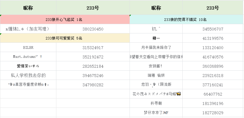 官方收到了很多投稿,你们精心绘制的每一笔,都让官方们直呼感动。因为奖励名额有限,如果你在这一次没有上榜请不要气馁,官方在这里衷心感谢你们的创作,阿里嘎多!感谢你们对233角色的喜爱,233角色周年庆即将到来,请期待后续活动,和233角色一起happy下去吧!
