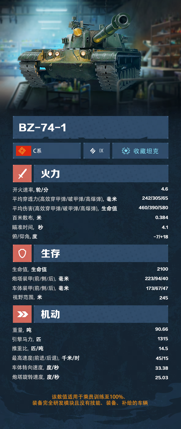 这是一辆标准的重型坦克!拥有可靠的装甲与单发伤害极高的主炮。它像一头猛兽在战场上横冲直撞!喜欢在一线战斗?请将它加入到您的珍藏列表中!