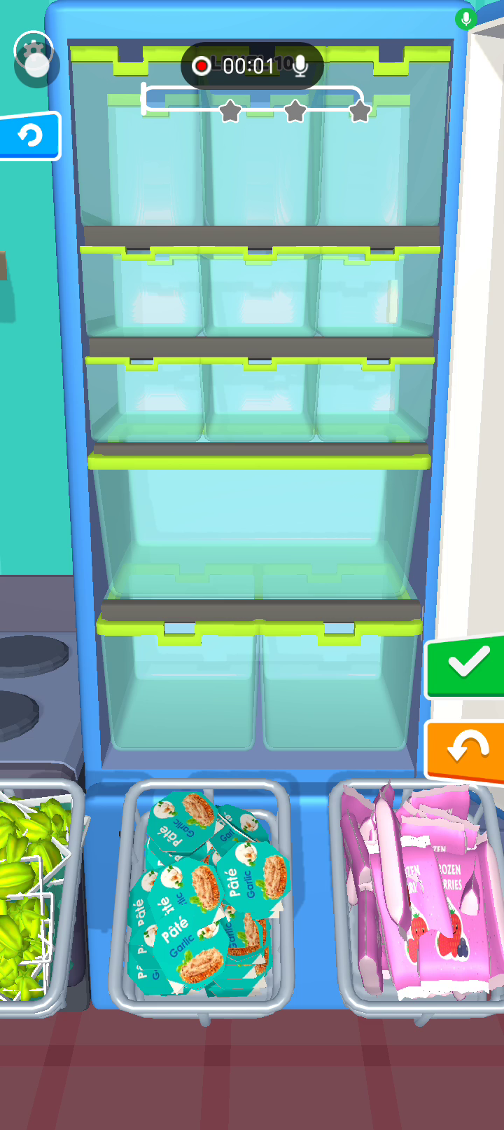 易于理解,易于操作 满足笔芯感觉,模拟现实生活 模拟生活中的物品分类场景,将架子上的不同物品放入冰箱,享受装满冰箱的快乐。 解锁美味食物及更多 关卡逐渐解锁,更多不同的物品会显露出来。你可以不断调整放置位置来增加你的注意力